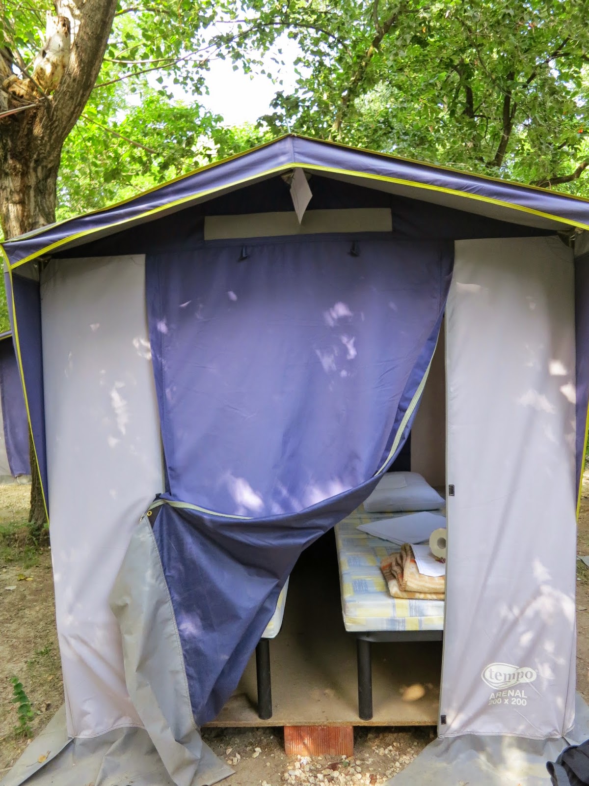 And so, we checked in at Camp Rialto. The tent was smaller than we expected, there was no space to place our bags except on the bed. Well, the camp site had a bar, pizzeria, communal toilets, laundry facilities and Wifi, I cannot expect much from €9.80.