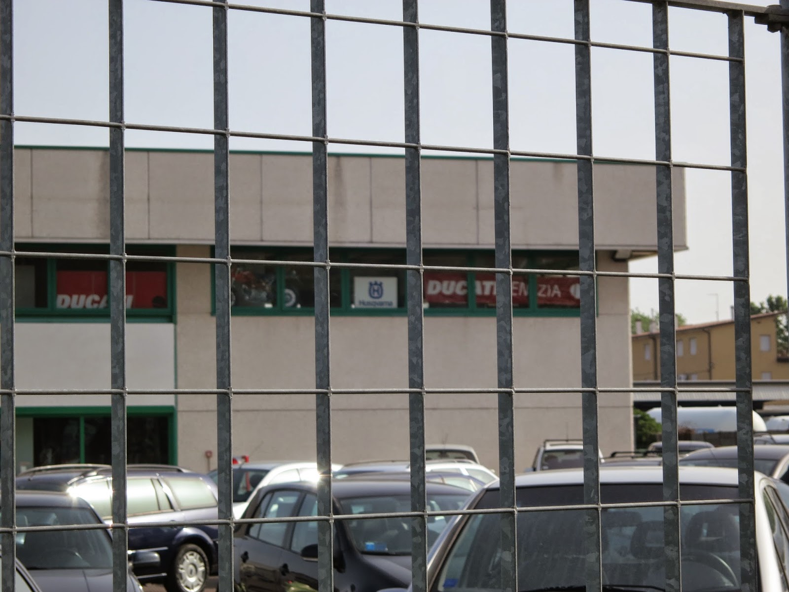| Waiting for the bus, noticed the Ducati logos at the back building? I saw two topless guys on a Ducati earlier. |