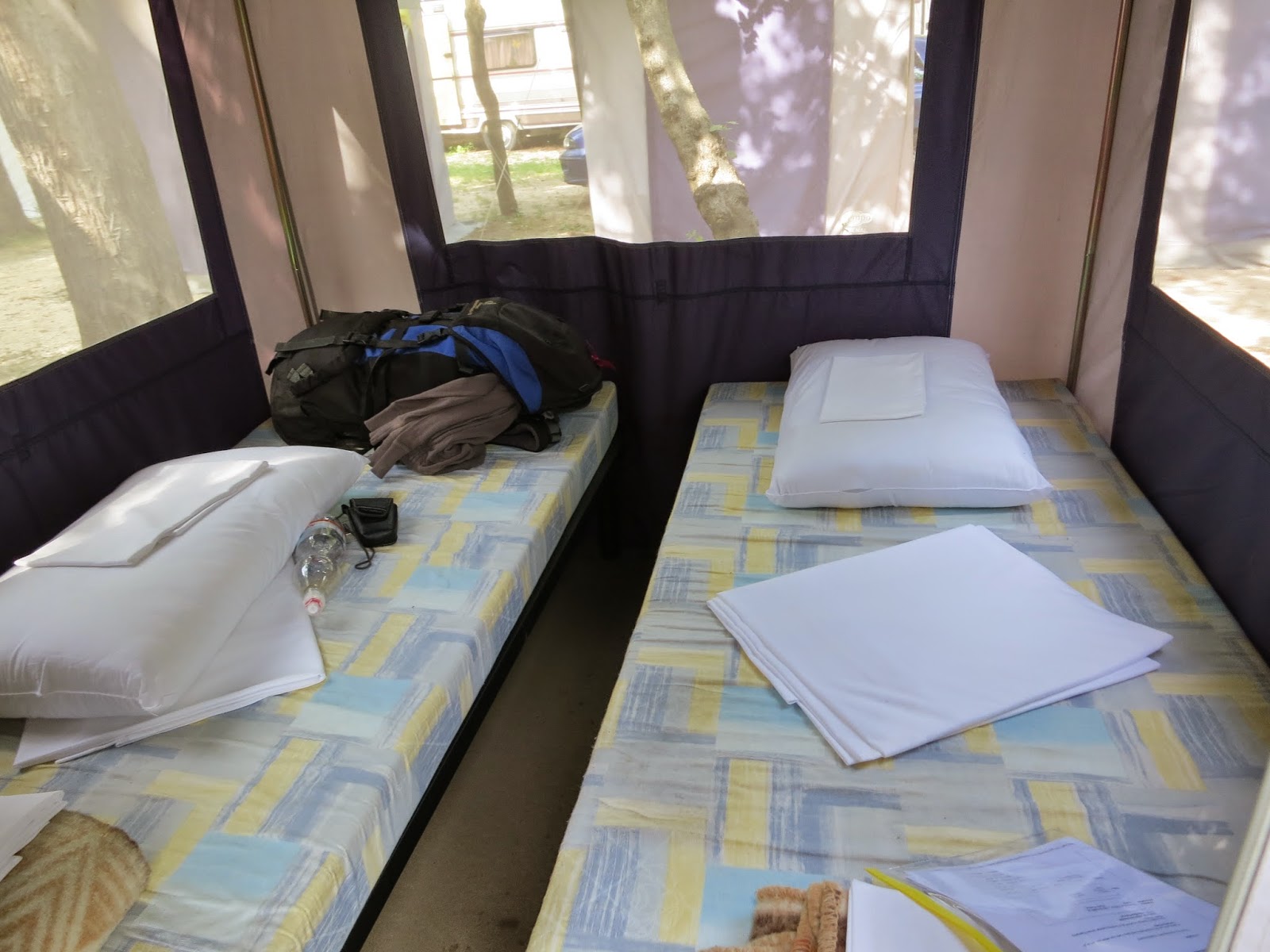 And so, we checked in at Camp Rialto. The tent was smaller than we expected, there was no space to place our bags except on the bed. Well, the camp site had a bar, pizzeria, communal toilets, laundry facilities and Wifi, I cannot expect much from €9.80.